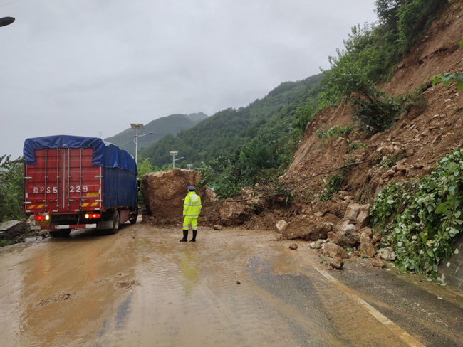9月13日以来,佛坪境内普降大到暴雨,造成108国道佛坪段发生水毁塌方9处,导致交通受阻。