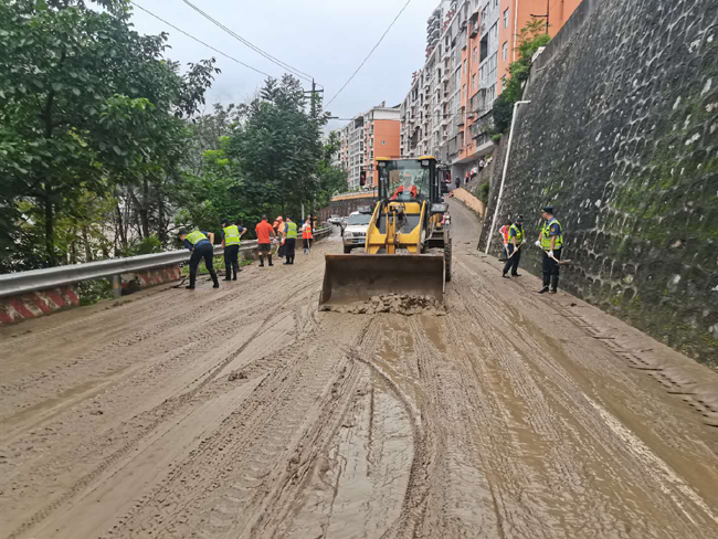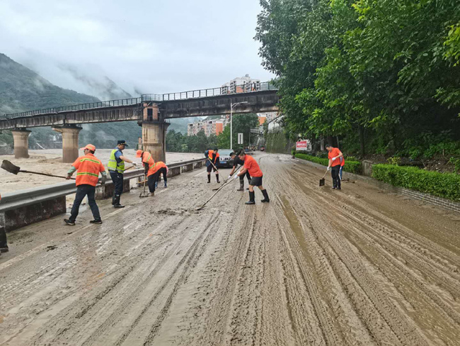 受连日强降雨影响,8月16日夜间,嘉陵江河水猛涨,国道345略阳段部分道路被洪水淹没,多处发生塌方、泥石流,导致交通中断。略阳公路管理段快速反映,立即启动应急抢险预案,组织人员、机械赶赴水毁路段设置警示标识,现场警戒观测、管控交通。 该段在路面洪水退后,第一时间安排党员突击队、应急抢险队全力以赴抢修水毁道路,按照先通后畅的原则,采取交通管制,设置警戒线,快速清理水毁路段塌方、淤泥,恢复道路畅通,并及时向市公路局和县政府报告灾情及抢险进度,截止17日12时水毁路段基本恢复畅通。目前已清理塌方、泥石流、淤泥2万余立方,投入人力40余人、机械20余台班,路面清理恢复工作仍在紧张有序推进。