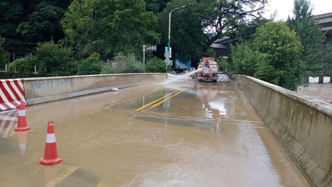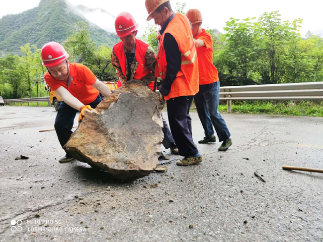晚20:30分:接巡查人员报告,因河水暴涨,G244线K1012+200~K1012+500留坝县武曲铺段因暴雨导致河水淹没公路,交通完全中断。险情就是命令,路政人员随即封闭了道路,紧急疏散现场滞留车辆,并提供了绕行G85高速方案。养护值班人员加强了沿线雨情及汛情观测、住户群众及滞留车辆的劝返工作。16日10时洪水实测流量:马道褒河洪水流量为2130m3/s,超警戒水位213%。经值班人员统计:国道244线上水路段共计7处,淹没长度6.3公里;沿线塌方72处,共计约8000余立方米,排水沟、涵洞淤积49处12400延米。至8月17日上午,国道沿线无次生灾害发生,无沿线驾驶员和群众被困,洪水逐渐褪去,灾后的国道244满目疮痍,路面冲毁、上边坡坍塌、路面水沟涵洞淤塞、构造物损毁。留坝公路管理段共计投入装载机16台、大型运输车22台、小型养护车6台、挖掘机2台、低压清洗车1台、洗扫车1台、人工120余人,全力恢复灾后国道通行。至8月17日下午,国道单幅已可通行,预计至8月20日将全面恢复正常通行。
