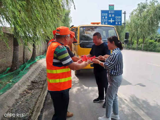 近日,灞桥公路管理段在210国道,为一线职工送去绿豆汤、西瓜等防暑降温物品,表达了对高温时节头顶烈日、坚守岗位,奋战在公路养护工作一线人员的关心,并嘱咐大家注意休息,合理调整工作时间,在确保身体健康安全的前提下完成任务,把清凉和关怀送到每一位员工的心坎上,让他们感受到公路大家庭的温暖。
