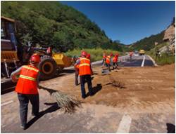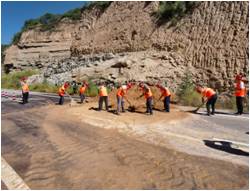 按照应急预案,宜川公路管理段各抢险应急小组分工明确,责任到人,有序开展抢通道路工作,清理塌方落石,消除现场安全隐患,对路面进行清洗,在确保安全的情况下,力争最短时间内疏通道路,用实际行动践行公路行业“2714”服务承诺。