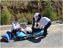 消防队员到达现场协助展开救援,根据现场情况,使用破拆工具对车辆进行破拆。医护人员分工协调,快速评估事件类型、伤员病情,进行检伤分类,根据伤员情况,进行规范救治,并立即将伤员转送医院。由于事故车辆载有危险品,安全风险大,在转移伤员后,消防大队迅速组织力量对火情发起总攻。随后,救援车辆将损坏车辆拖离现场。