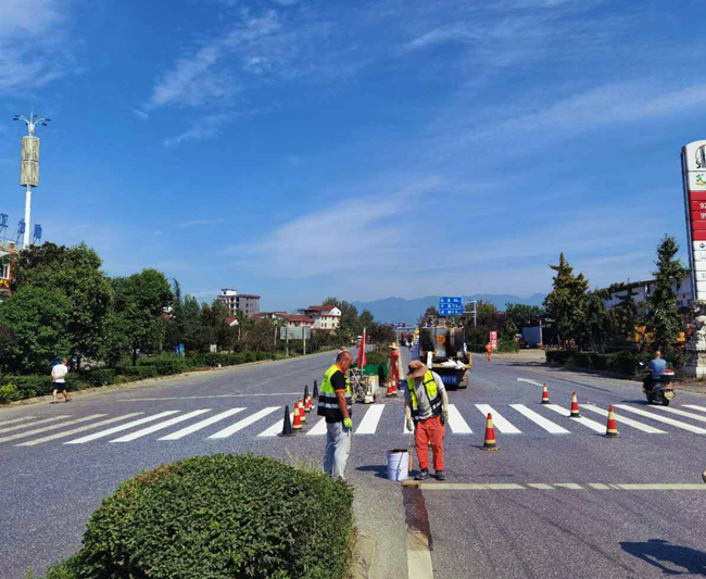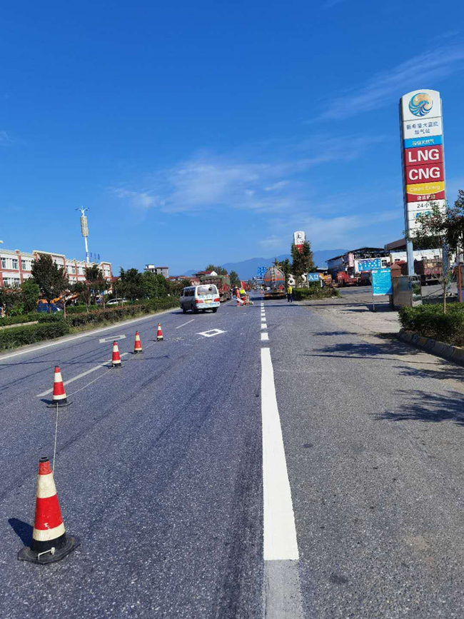 此次主要对公路的双黄线、分隔线、路口停止线、导向标、斑马线和人行道等进行标线更新,针对原有标线老化、易脱落的情况,采用了精铣刨工艺,利用铣刨机将原有标线路面铣刨2mm,精铣刨工艺可以有效去除表面污垢及原有标线,清扫干净后施划标线,为新标线的施划提供相对洁净的基面,新标线具有耐久性、醒目性,同时也为夜间行车的安全起到保驾护航的作用,大幅度减少交通事故的发生,保障了人民群众的生命财产安全。
