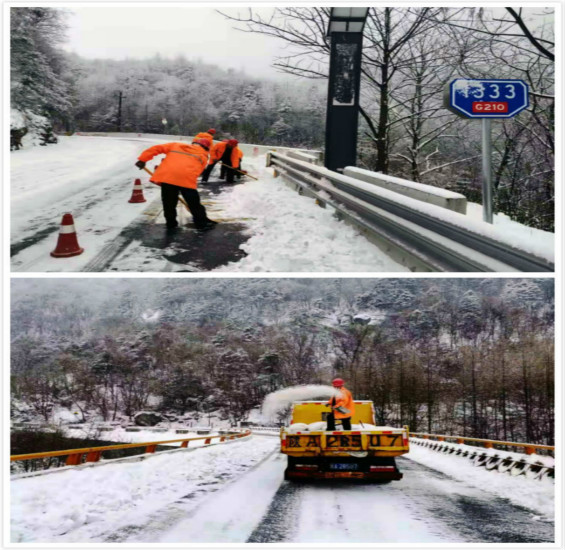 目前,210国道秦岭山区段仍在持续降雪,沣峪公路段职工正在积极清理中。交警部门对G210秦岭山区路段实行交通管制,提醒过往司机提前规划出行路线,做好雨雪天安全防护措施。