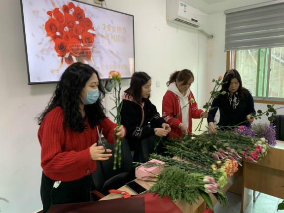 为迎接第111个国际妇女节的到来,近日,长安公路管理段开展了以“奋进新时代 巾帼展作为”为主题的插花活动。