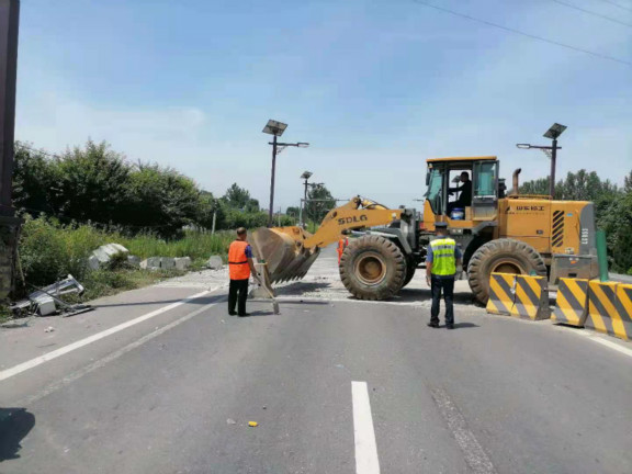 路政人员到达现场后,首先对交通进行管制,并协助司乘人员联系120将伤者送医,然后联系交警部门对事故进行勘察处理。同时调集装载车、道路清扫车等机械及人力对路面进行清理。经过紧急处理,上午11时30分,道路恢复畅通。