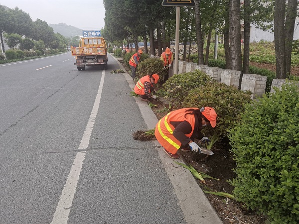近日,商南公路段抢抓当前绿化有利时机,积极在312国道进行绿化带补植工作。
