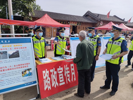 2022年5月18日,环山路政大队联合将军山超限检测站在辖区沿线摊位集中处和沿线村委会设立宣传点,摆放宣传展板,同时将《中华人民共和国公路法》《公路安全保护条例》《陕西省秦岭生态环境保护条例》及扫黑除恶等相关内容印制成宣传彩页,向过往群众及司乘人员发放并现场解疑答惑。集中宣传后,路政人员深入辖区村镇及街道入户宣传,通过具体的案例生动地向公路沿线商户、群众细心讲解路政执法的法律依据和管理范围,获得广大群众对路政管理工作理解和支持。