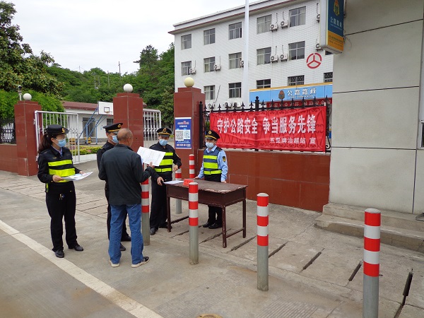 该站紧密围绕“守护公路安全、争当服务先锋”主题,一是落实专人,细化方案,在前期摸排的基础上,进一步明确宣传方向、重点和措施,有计划、分步骤的开展全方位宣传,积极吸引社会关注,争取公众支持。二是通过悬挂横幅、张贴标语,利用稽查车深入国道沿线发放宣传单、播放车载音响等方式,集中宣传《公路法》、《超限运输车辆行驶公路管理规定》、《陕西省治理货物运输车辆超限超载条例》等治超法规,教育引导广大司乘人员树立爱路护路意识,确保合法、安全上路行驶。三是在省界卸货场设立咨询点,积极宣传科学精准做好公路疫情防控和保通保畅等相关政策,接受司乘人员、群众的咨询和诉求;开通应急物资“绿色通道”,协助化解疫情防控和交通管控矛盾,联通服务城乡物资配送的“最后一公里”,保障各类防疫和生产生活应急物资运输畅通。四是深入辖区建设工地、厂矿企业和运输业户,开展送法上门服务;借助12328、“前路无限”小程序等渠道,收集队伍内部治超、执法、服务等方面的问题线索,严查严处不作为、乱作为行为,让合法运输“前路无限”,切实维护人民群众的合法权益。通过一系列活动的扎实开展,进一步拓宽宣传渠道,大力营造全社会关心公路、爱路公路的舆论氛围,收到了良好的宣传效果。