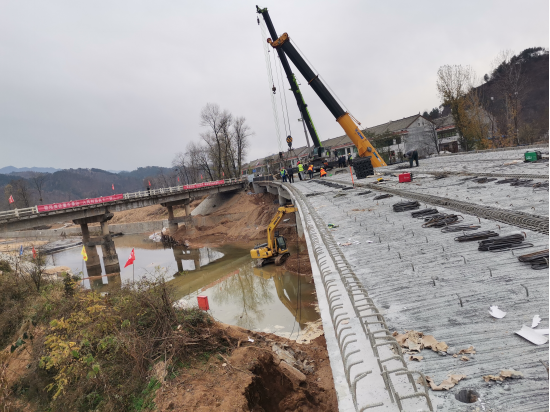 G242三要沙河大桥全长106.08米,宽12米,设计速度60Km/h,兼顾城市道路功能。该项目由沥青拌合厂承建,于2022年6月开工,计划2022年12月底前建成通车。为了更好更快地推进桥梁架设进度,工程项目部科学部署、精心谋划,克服多重困难,结合施工特点,全方位优化施工方案,强化施工生产组织,着力各工点的资源投入、进度落实、质量管控和安全环保管理,加强对作业人员技术交底与安全教育培训,保证了高效率、高质量完成全部箱梁架设的目标任务。