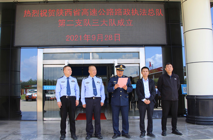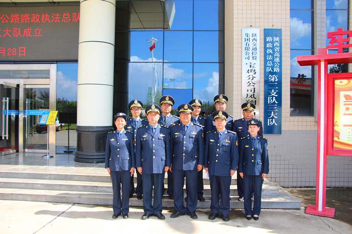 9月28日上午,省路政执法总队第二支队三大队举行揭牌仪式,支队领导,陕西交控集团宝鸡分公司总经理、副总经理,宝鸡市公安局交警支队高速交警大队大队长、副大队长,宝鸡分公司凤翔管理所所长等出席揭牌仪式。