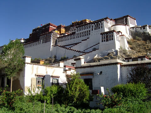 相传为七世纪时藏王松赞干布为迎娶文成公主所兴建,目前所见建筑为17世纪以后由达赖五世所重建;主要分为白宫(历代达赖寝宫)与红宫(历代达赖灵塔殿与各式佛寺)两大部分;金碧辉煌、庄严神圣,气势非凡无比,以达赖五世灵塔殿、超凡佛殿观音殿、法王洞最弥为珍贵,是古代西藏文化、宗教、政治中心。