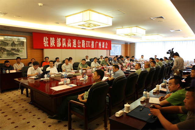 2011年8月4日,驻陕部队高速公路ETC推广座谈会在西安召开。省军区及驻陕部队共计14个单位应省交通运输厅邀请参加了会议,省交通战备办、省高速公路收费管理中心、省高速集团、省交通集团、西安公路研究院列席会议。这标志着我省高速公路不停车通行在驻陕部队全面推广。