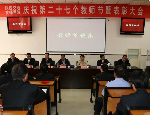 9月8日上午 ,驻厅纪检组组长王世英在厅科教处处长马秦的陪同下与陕西交通技师学院教师欢聚一堂,共庆第27个教师节暨表彰大会。会议由陕交院党委书记张冬主持。