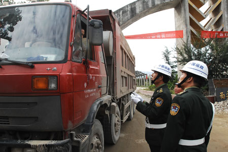 在8月份的宣传阶段,市、县政府机构结合《公路安全保护条例》宣贯工作,深入砂石料场、拌和厂、货运企业等货运源头场所,发放《砂石料超限运输重点区域百日专项整治宣传单》及政府《通告》,告知超限装载、超限运输、闯站或非法改装、黑车等所承担的法律责任。在9月份的集中整治阶段,市、县道路运输管理机构主动联合当地公安治安、交警、国土、水利、电力等部门,采取停止供电、供火工品等手段;停、卸、罚、拆多措并举,对砂石料超限运输的源头和车辆进行了为期一月的集中整治,取得了初步成效。目前专项整治行动已进入巩固提高阶段,将主要针对集中整治难度较大的“钉子户”,由市、县交通运输主管部门汇报当地政府,联合相关部门进行重点整治。