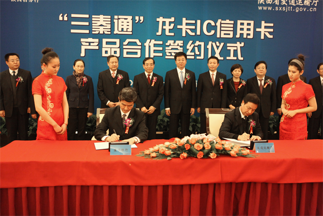 11月24日陕西省交通运输厅与中国建设银行陕西省分行“三秦通”龙卡签约仪式在西安索菲特酒店隆重举行,陕西省交通运输厅厅长冯西宁与中国建设银行陕西省分行牟乃密致辞并揭牌。副厅长魏培斌、总会计师李峥嵘,建行陕西分行副行长高育昌等出席签约仪式。