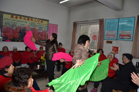 老人为大家表演节目