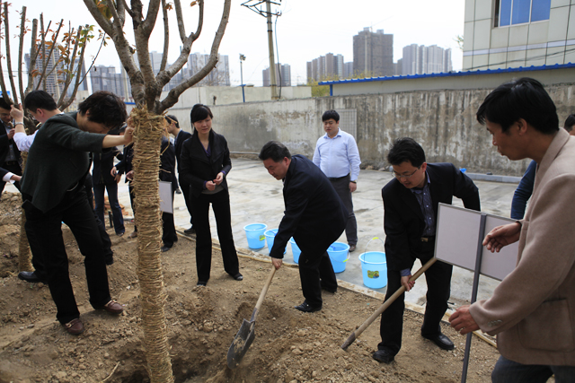 同事们五个一群、三个一组,有的挖坑,有的扶苗,有的培土,植树现场一派热火朝天的景象。参与人员不顾一身土,一身汗,经过自身的辛勤劳动,各科室种植了属于自己的树苗,为中心环境绿化洒下了一片绿的希望。