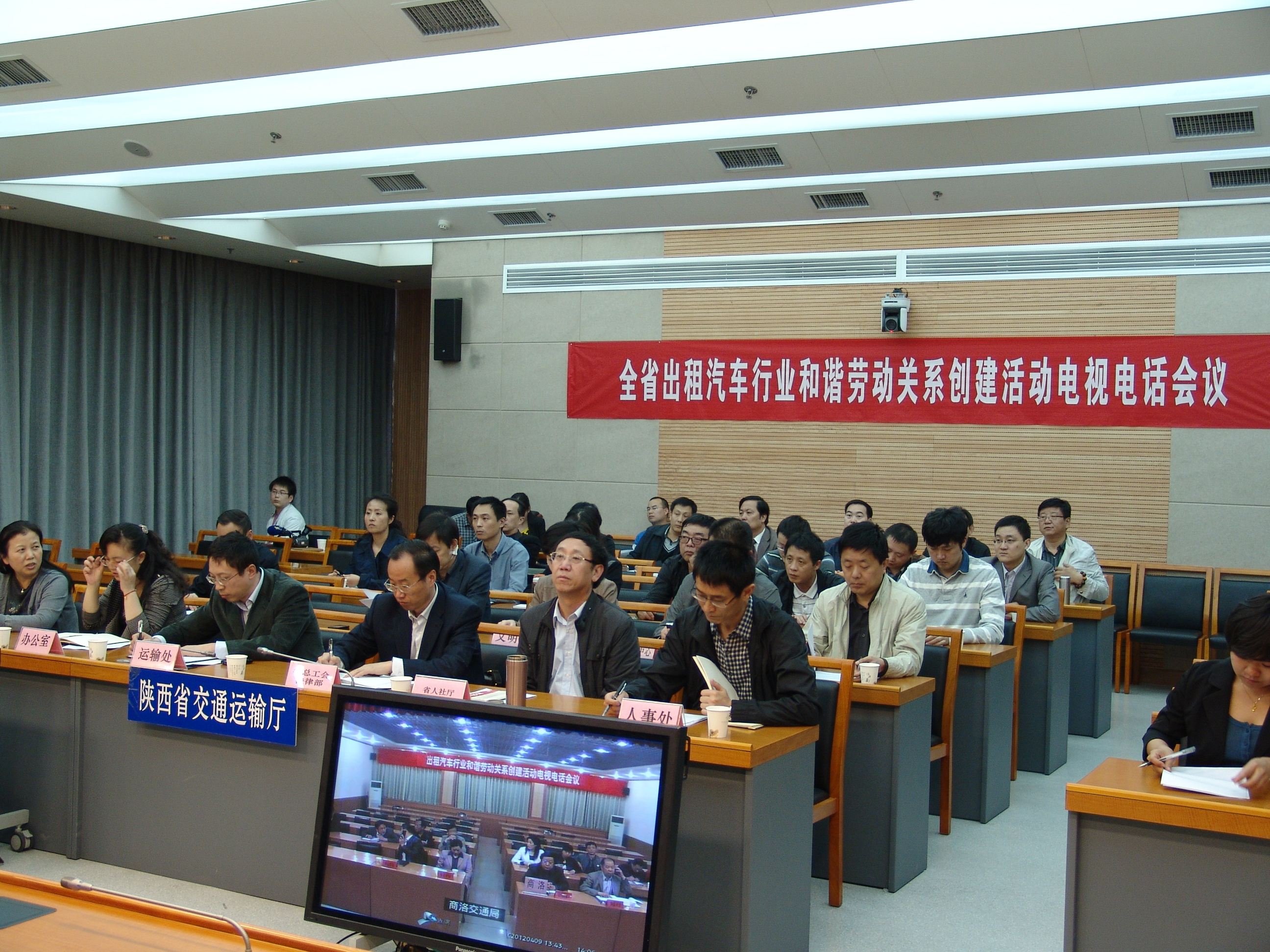 4月9日,省交通运输厅、省人力资源和社会保障厅、省总工会联合召开全省出租汽车和谐劳动关系创建活动电视电话会议。省交通运输厅副厅长王省安、省总工会副主席李向柱、省人力资源和社会保障厅副厅长沙德宪出席会议并讲话。会议由省交通运输工会主席陈武汉主持。