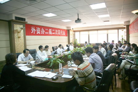 4月27日下午,外资办二届二次职代会在办机关会议室召开。办领导、职工代表和列席代表共29人参加会议。办党委书记陈波、主任南浩林出席了此次会议。