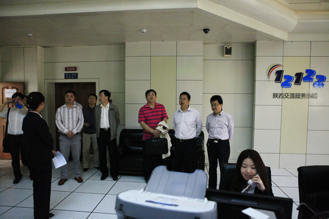 4月23日,江西省高速公路联网管理中心刘红生副主任一行考察组来省高速公路收费管理中心考察学习,中心主任鲁会劳、副主任王军陪同实地参观了我省高速公路综合监控大厅、“12122”公众出行服务、“三秦通”非现金收费系统并座谈交流。