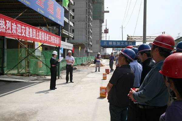 5月16日上午,交通集团航天基地施工现场鞭炮齐鸣,彩旗飘扬。随着施工人员抹平顶层坡屋面的最后一铲混凝土,交通集团航天基地2#住宅楼顺利封顶,现场举行了简单的封顶仪式,西镇分公司领导班子成员,航天基建办全体人员、监理单位和施工单位有关人员参加了仪式。