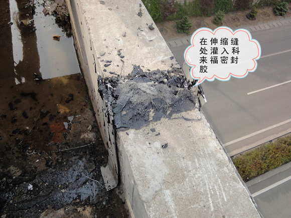 西禹公司韩城管理所管辖范围内的K845+980、K848+050高架渠,因使用时间长,高架渠伸缩缝老化后出现脱落开裂现象。农忙灌溉时,水从损坏伸缩缝处下泄流到路面上,造成路面积水,给高速路上行驶的车辆造成了安全隐患。