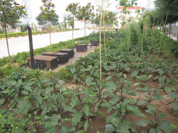 首先是因地制宜,选择主区宿办楼、公共洗手间后侧近2亩绿地作为开垦土壤;二是分片包干,党员干部牵头,各部门分工协作,耕耘菜地;三是以工勤人员为主力,引荐松土、播种、种苗、浇水、施肥、除草、采摘等各个环节的种菜经验,为最后的收获打下了良好的基础;四是合理布局青菜、辣椒、大葱、茄子、番茄、黄瓜、豆角等蔬菜的种植搭配,给员工餐桌增添绿色蔬菜的同时,也点缀、装扮了绿化带,使所处环境充满生机,令人心旷神怡;五是充分利用污水处理系统提供的有机肥,保护环境,节约资源。
