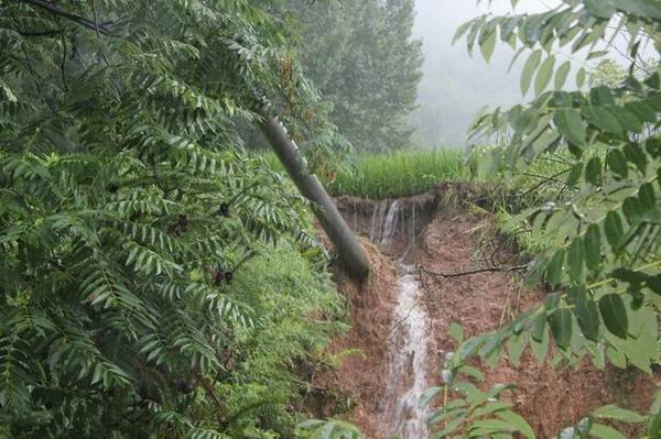 险情一:5时30分,巡查小组排查到到服务区下行线K258+250m时,发现服务区供电专线电杆地基塌陷,电杆严重倾斜,导致电路中断,发现此情况后,值班领导及时上报分公司领导和工程养护科,并及时将险情对汉阴县供电局进行了通报。