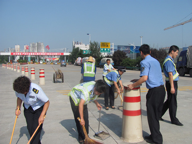 为了切实抓好广场与市区交界处环境卫生,西宝分公司在加强与驻地相关职能部门协调的同时,积极采取措施进行环境卫生综合整治:一是聘用了两名保洁员,专门负责收费广场同市区交界处环境卫生的清理;二是联合高交部门对广场滞留车辆司机进行宣传教育,要求司乘人员不要随地乱扔垃圾;三是养护人员对广场与市区交界段的环境卫生进行了集中整治,并清除杂草、清运了垃圾,拆除了废弃的垃圾台,对边坡遗弃的建筑垃圾进行了填埋处理;四是建立问题管理监督机制,值班人员每天早晚对交界处卫生巡查2次,发现问题立行立改,对未及时整改的实行问责。