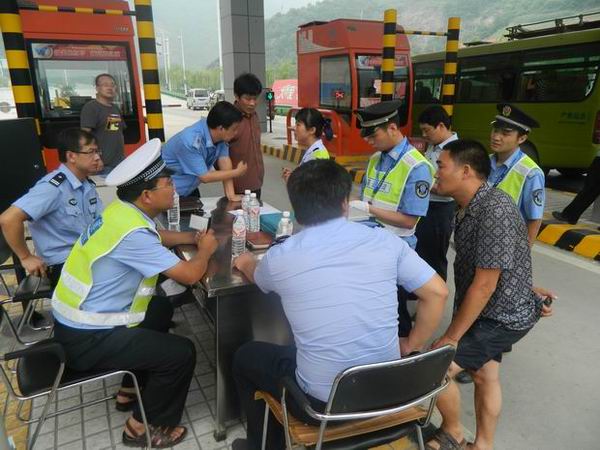 四方联动齐抓共管。收费、路政、高交协同作战,密切配合,集中力量整治偷逃车辆。7月17日,白河收费站、白河路政中队与高交支队第三执勤大队联合执法,重点对65辆逃费嫌疑车辆进行查处,严厉打击偷逃通行费违法行为。在打击逃费车辆当日,收费站的治超人员分别在出口车道上值勤;当收费员发现有逃费嫌疑车辆时,治超员立即到车道进行拦截,高交、路政人员核对行驶证、驾驶证信息。截止当日下午17时,共查处7辆逃费车辆,追缴通行费820元整。