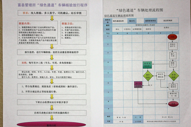 “学”即学习核验方法、学习操作流程。管理所组织员工对“绿色通道”文件进行再学习,下载各类绿色通道品种图片,重点识别南方果蔬品种。还制定了“绿色通道”车辆核验放行流程图,规范核验程序,坚持做到“一报、二查、三核对”,即上报监控;查货物品种,查货物形状;核对装载鲜活农产品是否达到该车车厢容积或核定载质量的80%以上,核对超限超载幅度是否超过5%;核对目录范围内的鲜活农产品与目录外的农产品混装,混装其他农产品是否超过核定载质量或车厢容积的20%。
