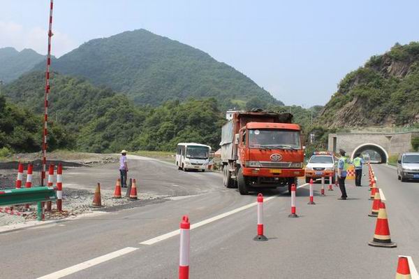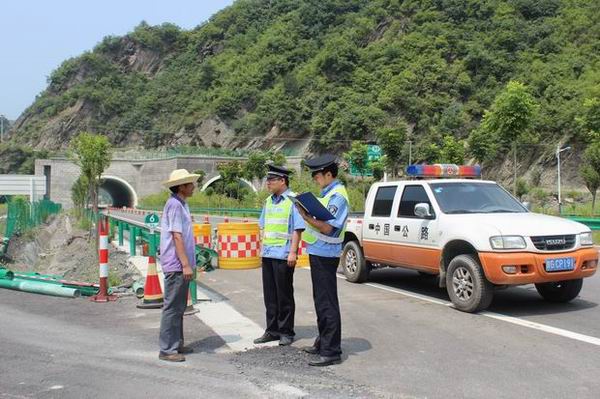 强化施工现场安全监管。一是成立专职道路保畅队。管理所根据施工保畅实际情况,从安康、石泉两管理所抽调精兵强将组建10人保畅小分队,实行四班三运转模式负责施工车辆上下高速公路管理和通行管制区域车辆引导工作。二是强化标志标牌设置。严格按照六区(警告区、上游过渡区、缓冲区、工作区、下游过渡区、终止区)根据监管情况,白河路政中队针对性的增添了“前方变道”、“禁行解除”、“假警察”、“限速”等标志标牌。三是加强巡查力度和频次。不定时对施工区域标志牌设置情况进行检查,发现缺失及时增添。四是施工便道防污处理。对沥青站至K96+600m开口处的施工便道进行硬化,并在平交道口适当位置设洗车处,对进入高速车辆进行冲洗,防止上路施工车辆车轮及车厢底部泥沙带入高速公路;所有运输砂石料车辆进行棉布覆盖,防止车辆上路后抛洒污染路面。五是保畅工作稽查管理。管理所每周不少于2次人员执勤情况的稽查,严格施工路段车辆出入,对每辆施工车辆出入进行查验,防止超限车辆上路和偷逃通行费事件的发生,发现问题及时下发通报限期整改。