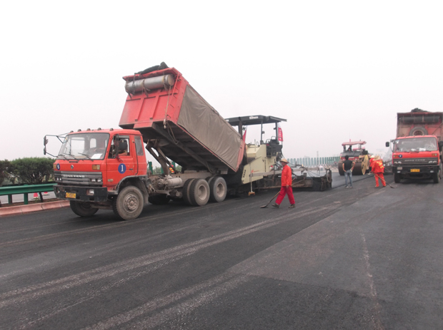 西宝高速公路K274-K291段路面工程由中交第四公路工程局有限公司B-M06合同段负责承建。由于受交通转换等因素影响,该段2011年11月仅实现沥青中面层通车,尚有单幅32.66公里上面层没有完工。为了完成剩余路面工程,保证西宝高速公路通行质量,今年上半年以来,B-M06合同段重新集结组织队伍,按照“五化”管理要求,精心准备施工前的各项工作。并于8月3日,成功实施交通转换,8月7日开始进行沥青上面层试验段摊铺。