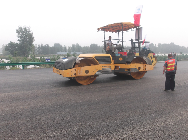 沥青上面层摊铺之后,标线工程跟进施工。预计,该段上面层施工将于9月下旬结束。