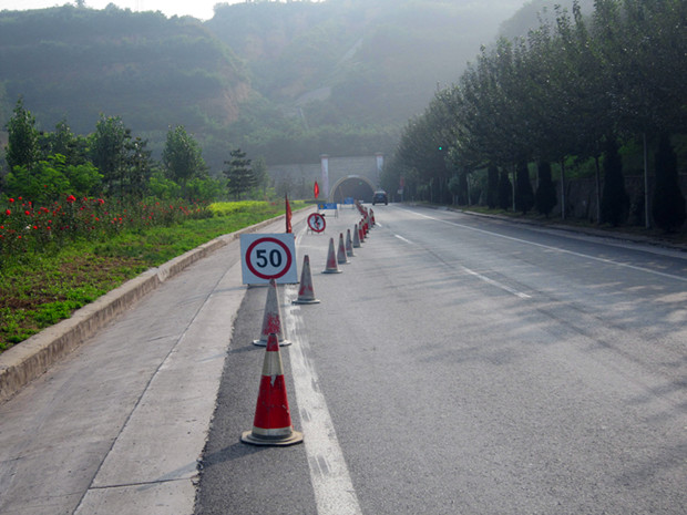 五是严格施工现场管理。配备充足的锥形桶、防撞桶、水马、太阳能导向灯、爆闪灯和各类施工标志牌,根据山区高速公路特点,在距施工现场3公里、2公里、1公里处设置大型警示标志牌。在每个交通转换点,配备太阳能导向灯、爆闪灯。施工现场标志标牌保证规范摆放,齐全醒目,夜间反光效果明显,确保车辆安全通行。