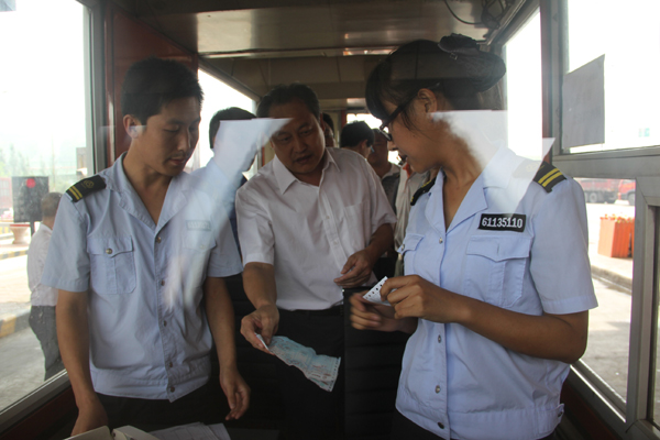 李峥嵘总会计师深入陕晋界收费站一线收费岗亭,实地查看了收费人员运煤车减半的操作流程、以及放行速度,并详细询问了陕晋界收费站的车流量、以及为做好运煤车减半收费工作所采取的措施。