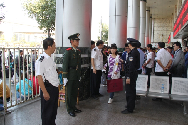 9月30日,陕西省西安汽车站迎来了节日客流高峰。为了确保旅客安全出行和站内正常秩序,车站安保人员与派出所民警、西安武警支队武警官兵联合执勤,全力以赴做好安全防护工作,保证广大旅客安全出行。