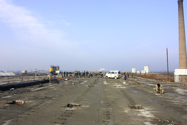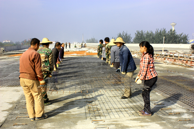 目前,施工人员正在紧张有序地进行桥面系施工,并力争在本月底之前全面完成,为沥青面层施工争取时间。