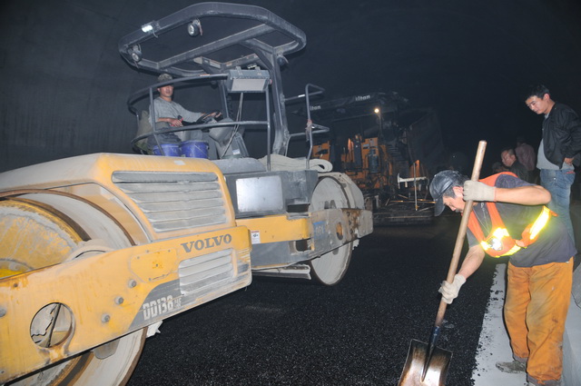 参建单位积极加大设备、人员投入,精心组织施工。相关单位上级法人派驻工作组,主要领导进驻工地现场指挥,配足配齐生产要素,细化工作任务,抓好现场管理。路面施工单位加强与土建、附属单位的沟通,充分利用晴好天气高温时段加快隧道外路面铺筑,隧道内施工用大功率空压机根据风向连续清扫,有效提高粘层油性能。施工过程中加强路基和结构物的抽检频率,确保又好又快地完成路面铺筑任务。路面1标工程的顺利铺通,标志着安康东项目陕鄂界至白河段主体工程全部完成,安康东项目2012年建设任务按期完成。