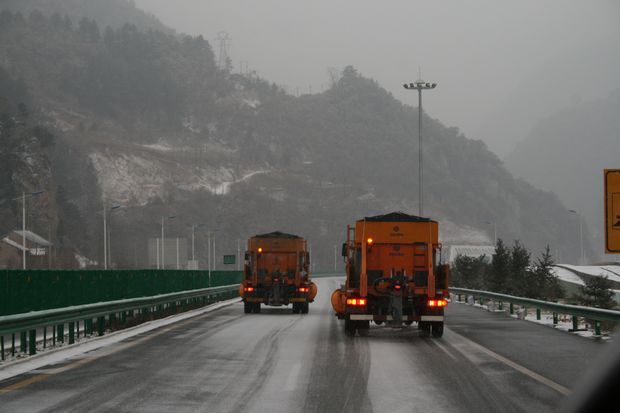 凌晨4点,秦岭山区气温低至零下9度,秦岭管理所根据雪情,迅速启动除雪应急预案,集合养护、路政、消防等各除雪应急小组根据降雪情况分段进行除雪作业,针对隧道出入口、弯道、纵坡、桥梁等重点部位加大融雪剂撒布量,在第一时间清除积雪,防止暗冰,并出动除雪车,路政车辆,等运送防滑沙、融雪剂,采取机械和人工相结合方式,全体人员全力以赴冒着刺骨的寒风、不怕冷、不怕累,齐心协力,投入到除雪保畅工作中,经过数小时的共同努力,道路积雪清除完毕,车辆通行正常。