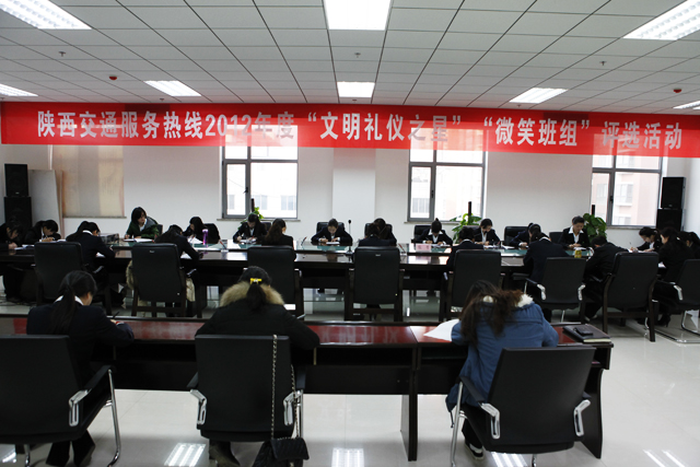 陕西交通服务热线(12122)开展“文明示范窗口”创建活动以来,各项措施稳步推进,初见成效,为进一步推进创建活动的深入开展,吹响2013“热线服务质量提升年”的号角,1月17日,陕西交通服务热线在热线班组及全体热线坐席人员中开展了“微笑班组”、“文明礼仪之星”评选活动。(简称“双评”活动)。