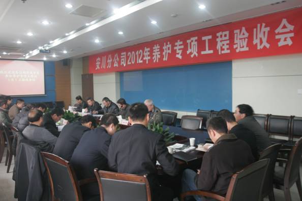 1月30日,安川分公司召开2012年养护专项工程竣(交)工验收会议。特邀省厅专家、工程设计、监理、施工和质量检测单位及安川分公司相关人员共31人参加了竣(交)工验收会。