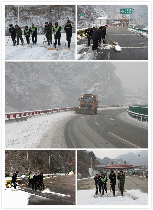 2月8日凌晨开始,西汉高速秦岭山区段由雨加雪转为中雪,路面积雪厚度5公分左右,根据雪情秦岭所迅速采取措施,一方面路政巡查和监控中心加强夜间降雪量和位置的跟踪信息上报,并出动6台巡查车分路段加大巡查密度,确保雪情信息上报准确。另一方面养护、各收费站、应急小分队同时开展除雪作业,两台除雪车辆循环上路,对易结冰、急弯、上坡路段加大融雪剂撒布量,各收费站全体员工利用推雪板、扫帚、铁锹、喷灯等工具,及时清理了车道、广场上的积雪,为车辆的安全畅通提供了有力保证。