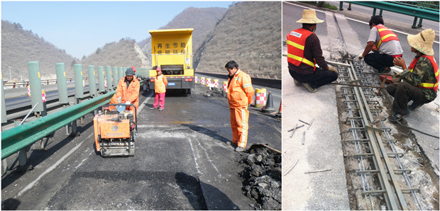 路面及设施维修保养方面,及时安排施工单位,对沿线钢板护栏、防眩板、轮廓标、铁丝网等进行维修与封闭,并利用多功能热补车对路面坑槽进行维修,组织施工人员对沿线伸缩缝、路缘石、路面裂缝、等损坏部位集中进行处理,同时严格按照规范操作流程,组织进行沿线桥护栏、混凝土护栏、收费岛等设施的刷漆工作。