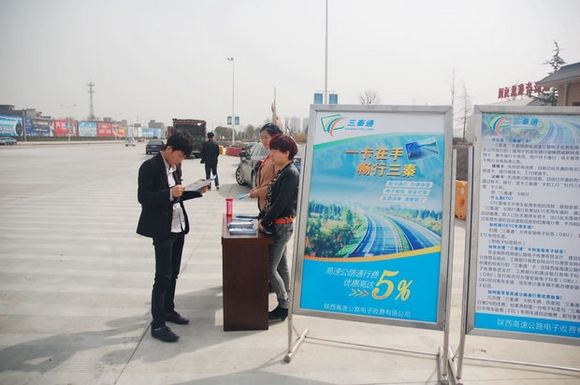 一是继续加大政策宣传力度,通过在收费站、汽车站、人员集中区域悬挂宣传横幅,布设宣传板、增设宣传咨询台等形式广泛进行宣传,营造浓厚宣传氛围。二是积极走访中航工业西飞等周边大型企事业单位,宣传电子支付的优势和具体办理流程,吸引并扩大ETC重点“客户群”。三是在办理过程中,严格执行关于安装电子收费车载装置车辆通行高速公路ETC车道通行费优惠的政策,并对用户提出的各种咨询进行耐心细致的解释。