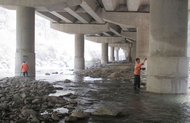 西汉高速户县段桥梁长度长、承担的交通流量较大,为加强和方便桥梁管理,确保在桥梁病害和安全隐患排查时能够第一时间发现问题和位置点,西汉分公司户县管理所在汛期前对所有桥梁墩柱进行了排序喷涂编号工作,使每个桥梁的墩柱都有一个坐标参照点。