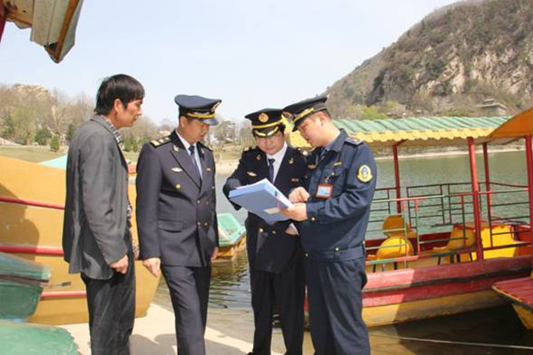 翠华山天池堰塞湖,是长安区内主要的水上旅游景点,湖区现有游船43艘,快艇2艘。随着春季旅游旺季的到来,水上游客人数逐渐增多,为强化水上旅游安全管理,长安区地方海事处对湖区安全进行了检查。一是海事人员对45艘船舶进行了安全检查,主要检查船舶技术状况、船员配备、各类证书等,并对检查中不适航的11艘船舶要求立即报废。二是严查船员资质,对船员技术进行专业考核,合格船员签发适任证书,发放船员服务薄。三是检查水运企业安全制度制定、安全责任落实情况及景区水运安全防护设施和安全警示标志配备等。检查后,该处要求景区管理部门进一步理顺水运企业安全管理体制,落实安全责任,严把船舶质量关、适航关,加大水上法律法规和安全知识宣传力度,强化水运从业人员的安全技能培训,制定切实可行的水上安全应急预案,有效预防和遏制水上安全事故的发生。