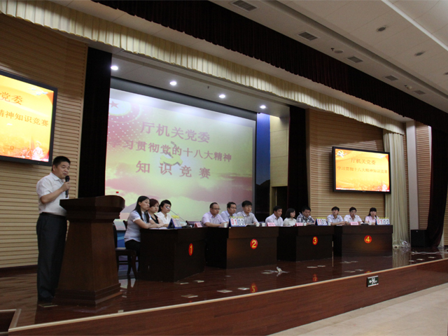 今年是中国共产党建党92周年,在“七一”即将来临之际,根据省直机关工委的工作安排,6月14日,厅直机关党委举办学习贯彻党的十八大知识竞赛决赛,省直机关工委副书记刘勇以及厅领导冯西宁、魏培斌、陈武汉、李峥嵘、杨冬华等莅临观看了比赛,并为获奖选手颁奖。
