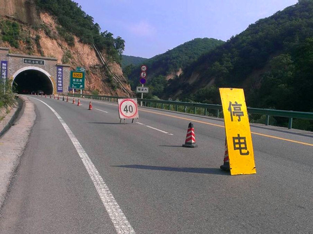 一是联系延安供电局,组织专业人员对毁损高压线路及倾斜、倒塌电杆进行抢修。二是联系工贸公司对箱变进行抢修检测,及时准备配件。三是在隧道入口处摆放停电警示标牌及限速行驶标志,及时提醒广大司乘注意隧道内行车安全。四是组织人员对隧道内淤泥进行清理,用水车把车道冲洗干净,防止车辆打滑,消除潜在安全隐患。五是及时修补隧道内破损的道沿反光膜,并进行擦拭,提升隧道内亮度。